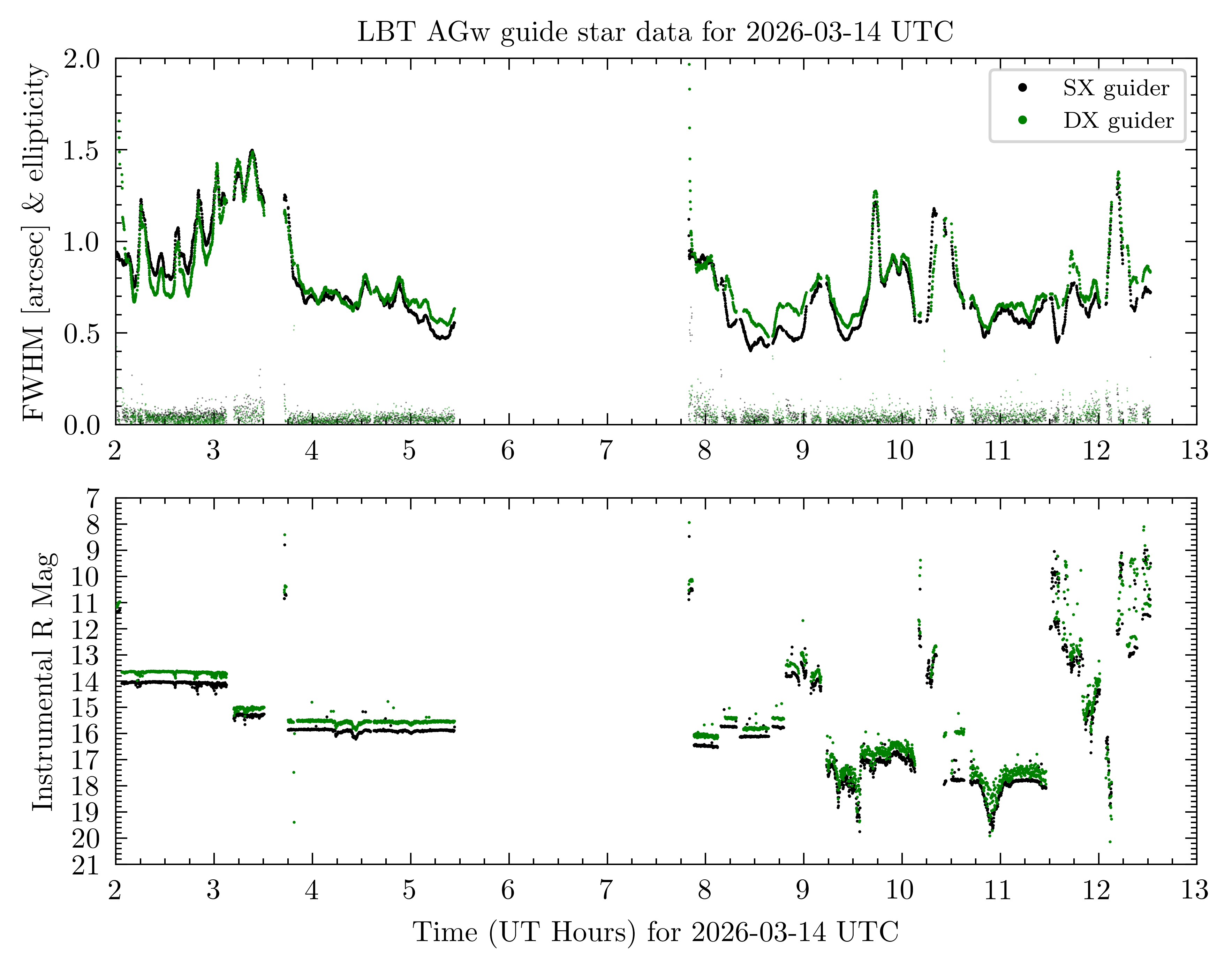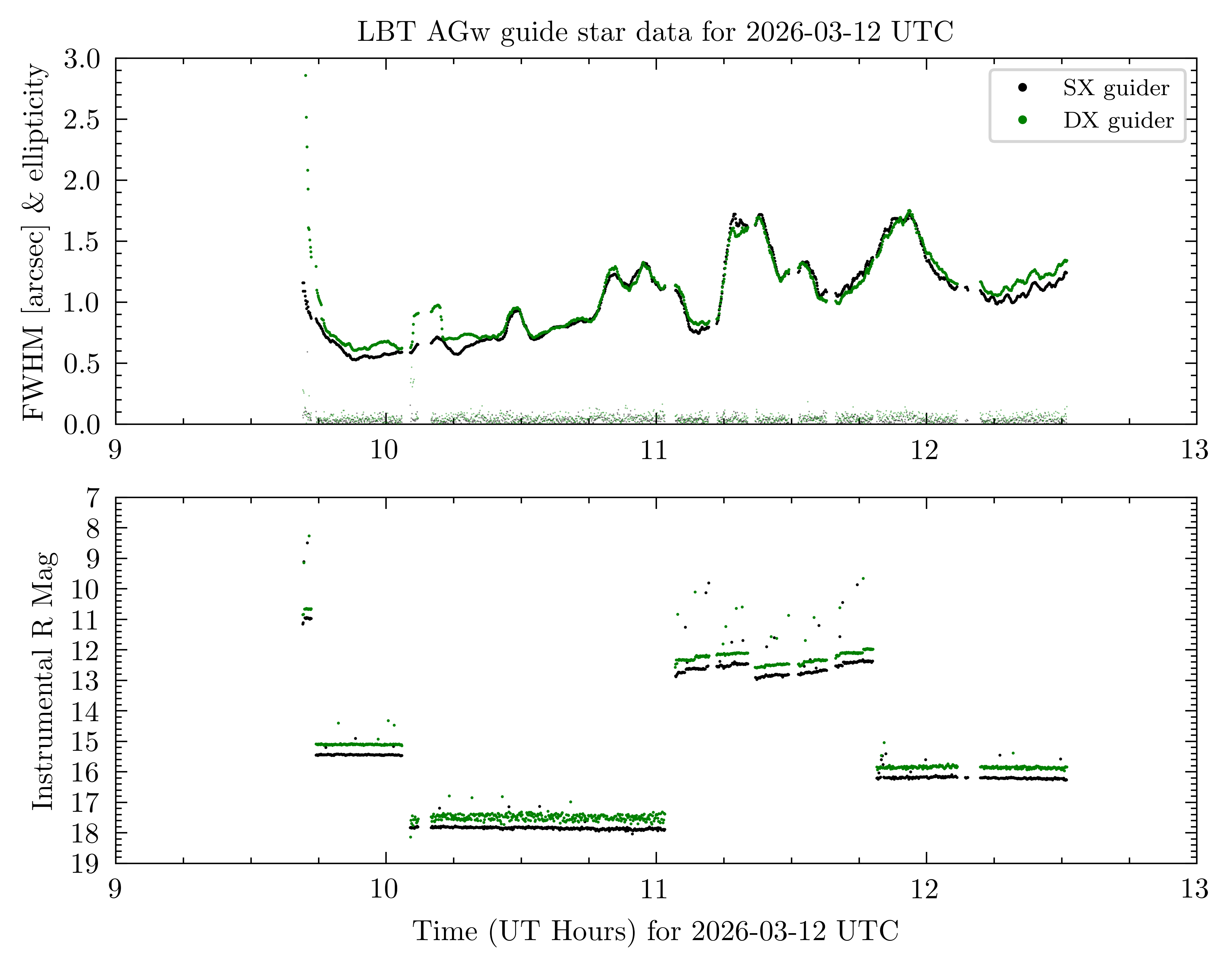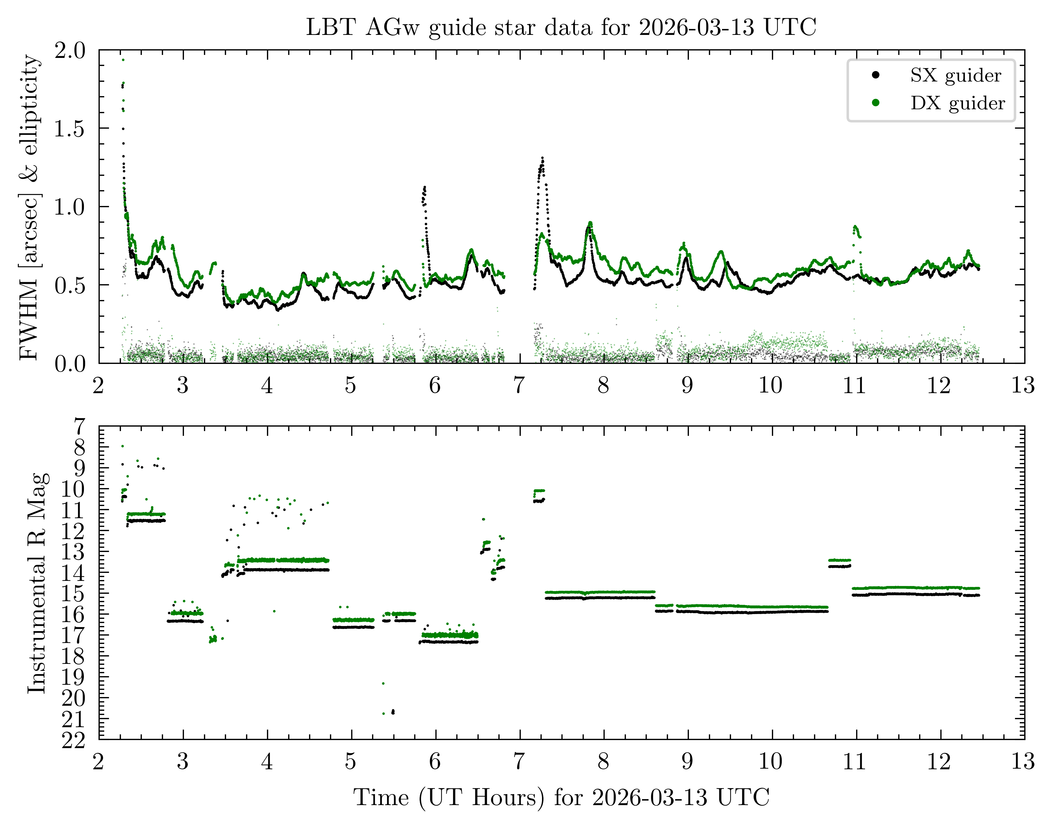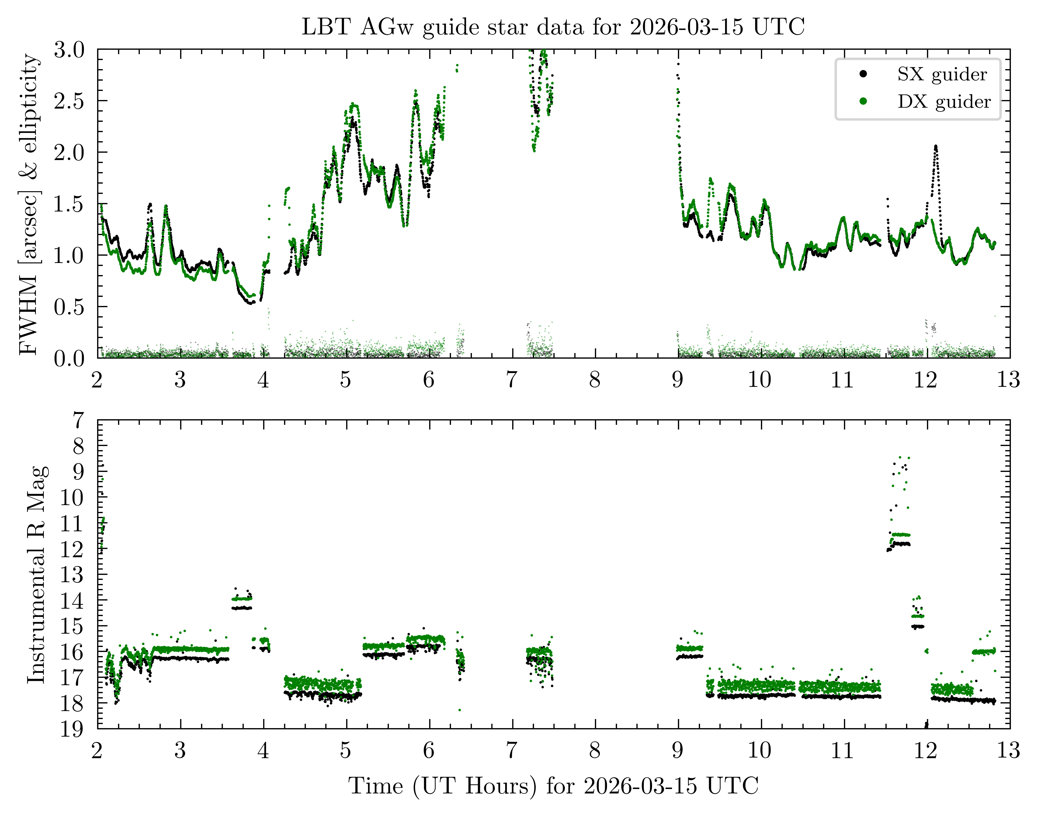 - AGw plots guide star image quality (FWHM and ellipticity) and instrumental